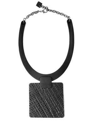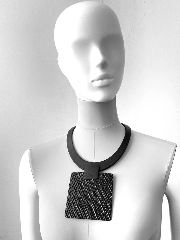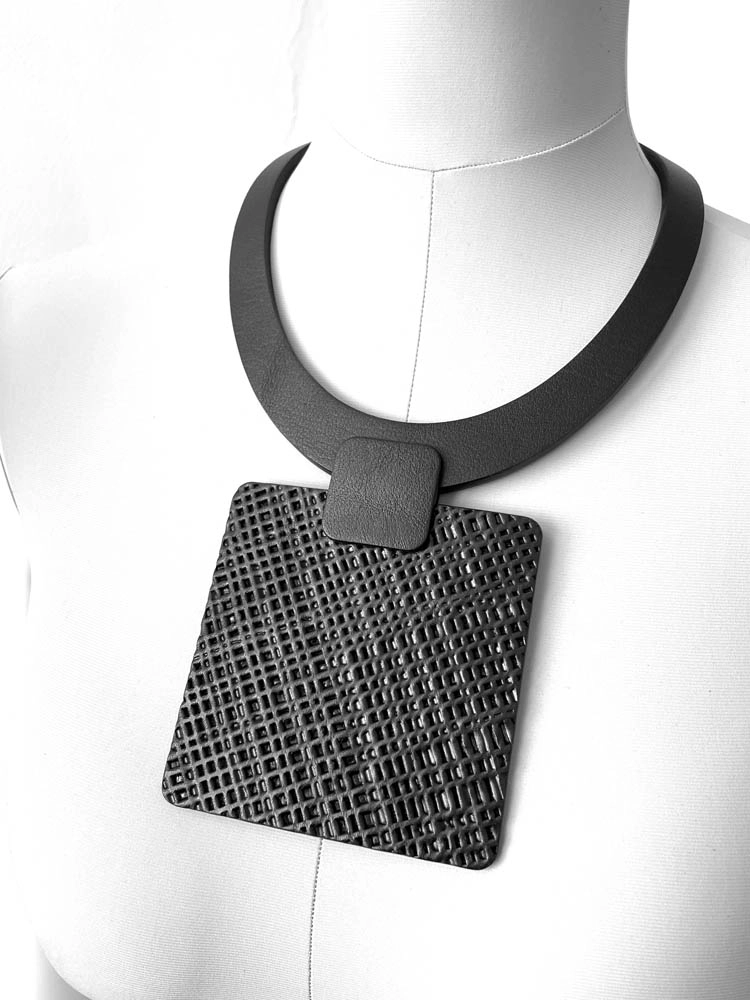 Колье кожаный КВАДРАТ чёрный фактурный арт 51801