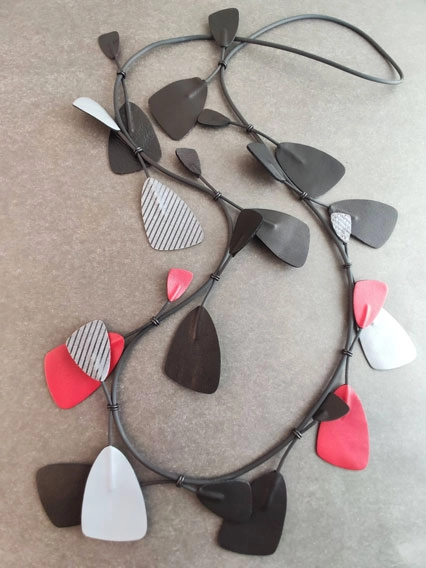 Колье из кожи ЛИАНА малая красный серый арт 24705