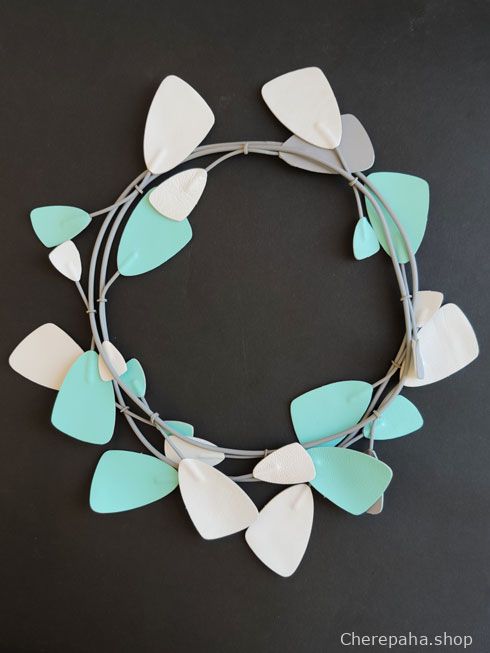 Колье из кожи ЛИАНА малая тиффани белый серый арт 24708