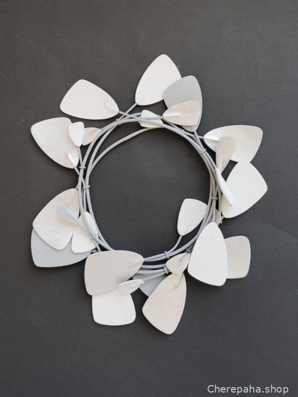 Колье из кожи ЛИАНА малая серый белый серебро арт 24710
