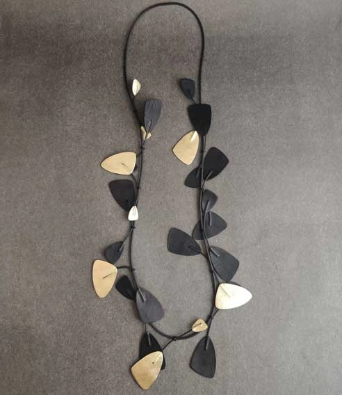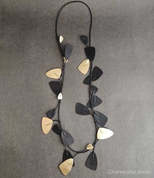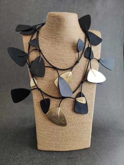 Колье кожаное ЛИАНА малая золото чёрная арт 24703