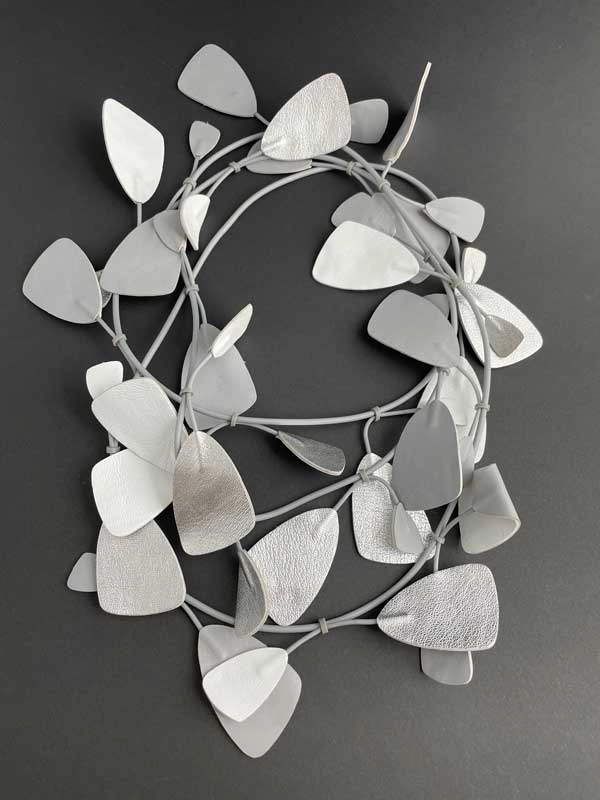 Колье из кожи ЛИАНА серебро_белый арт 2439