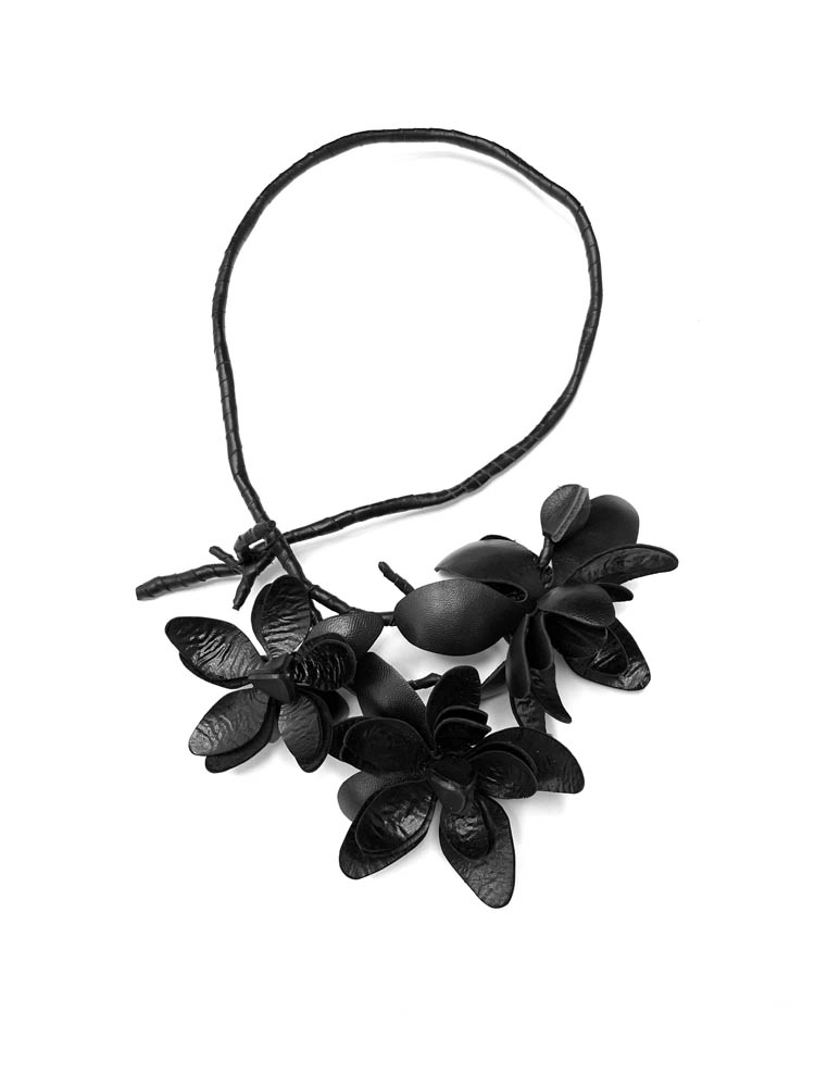 Серьги кожаные ЦВЕТЫ МАГНОЛИЯ чёрный арт 51501 |