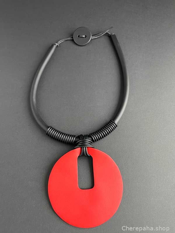 Колье кожаное ЛУНА красный арт 28903