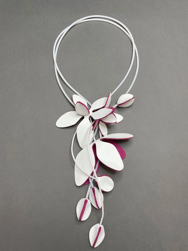Колье из кожи МАГНОЛИЯ цветы, регулируемая длина
