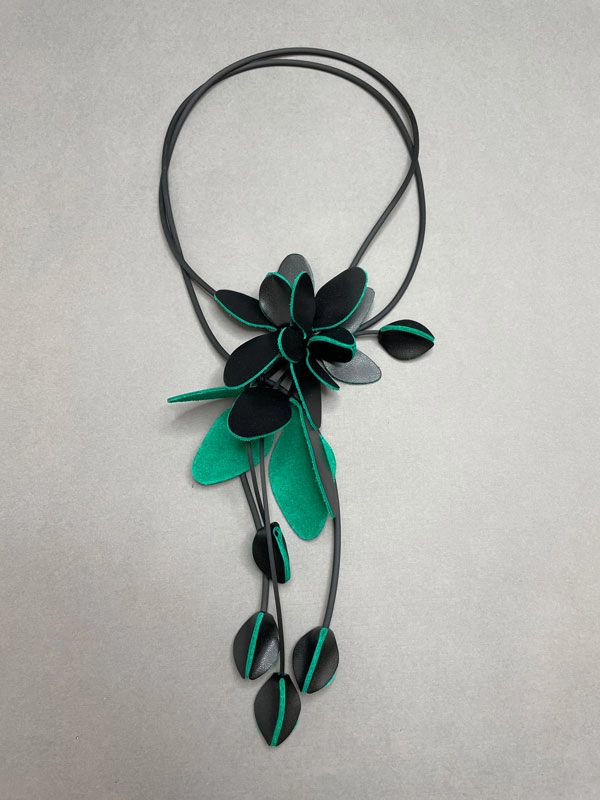 Колье из кожи МАГНОЛИЯ цветы, регулируемая длина