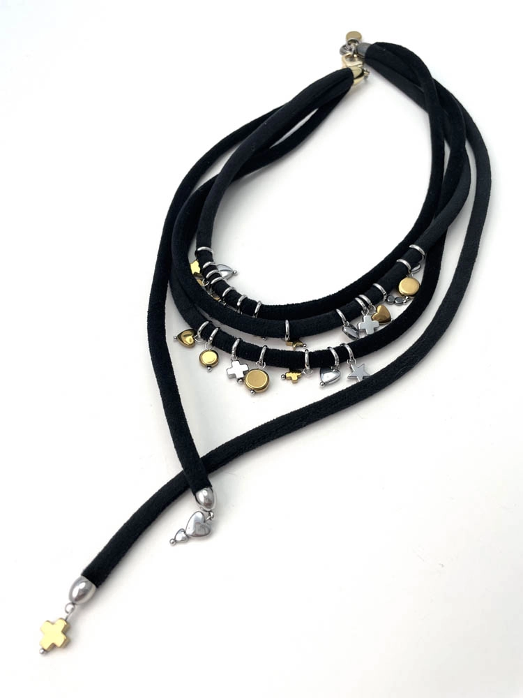 Колье бархатное МИЛКИ ВЭЙ чёрный вышивка натуральным камнем цвет серебро золото