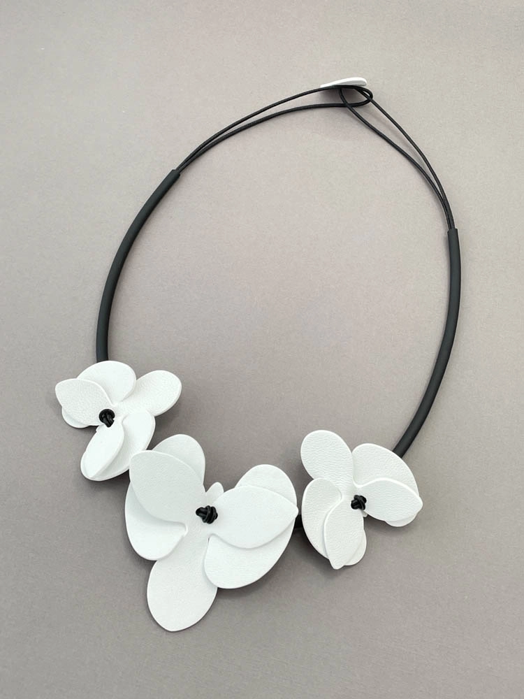 Колье из кожи ОРХИДЕЯ белый арт 36601