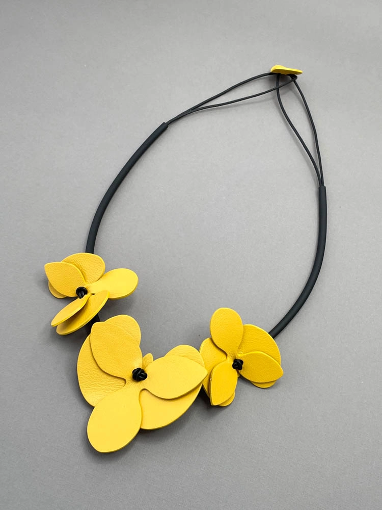 Колье из кожи ОРХИДЕЯ жёлтый арт 36603