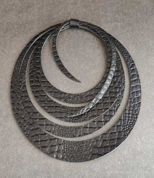 Колье из кожи СПИРАЛЬ крокодил чёрный арт 0090