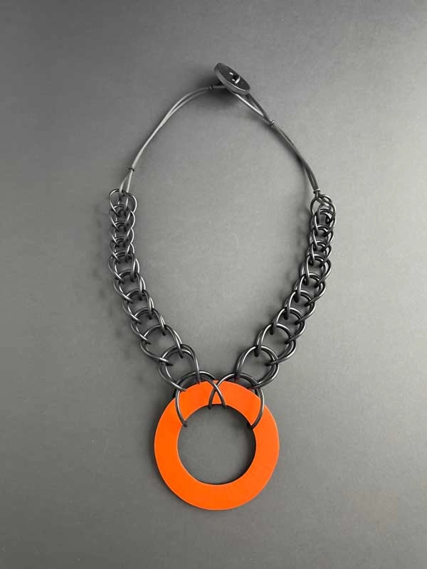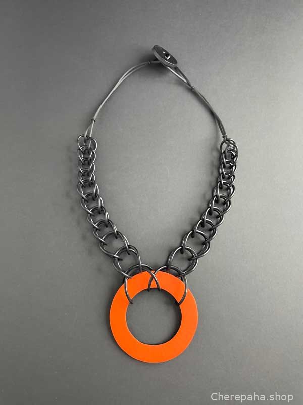 Колье кожаное СПРИНГ КОЛЬЦО оранжевый арт 26904