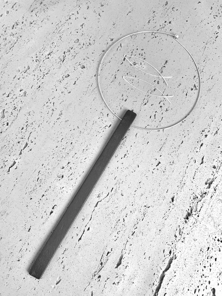 Минималистичное колье СТИК М из натуральной кожи чёрного цвета