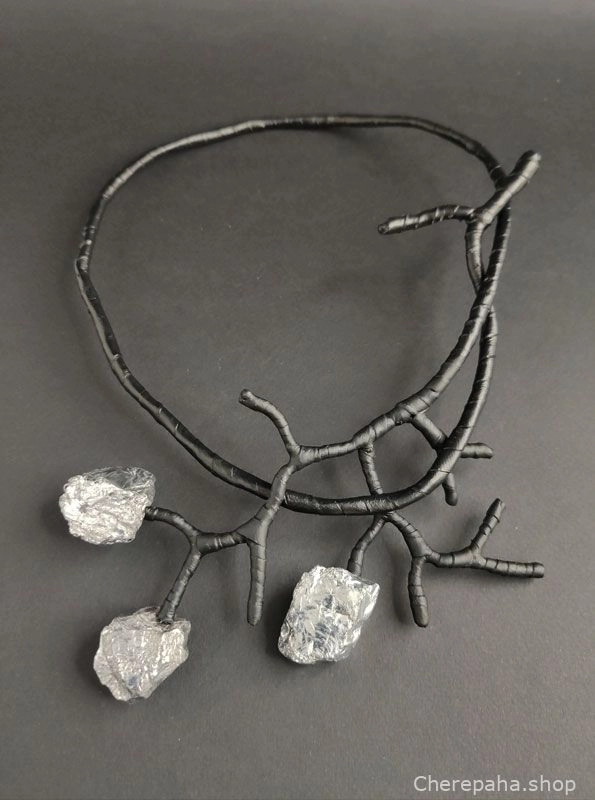 Колье из кожи СУХАЯ ВЕТКА пирит