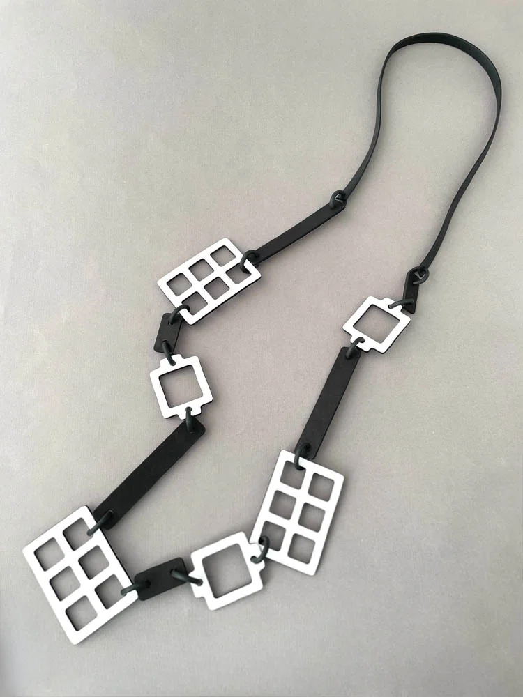 Колье из кожи ТЕХНОАРТ чёрный белый арт 46402