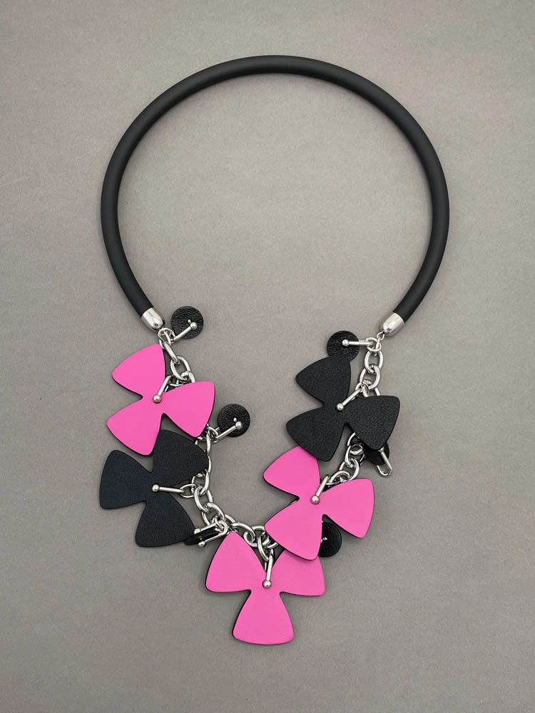 Колье из кожи ТРИЛИСТНИК фуксия чёрный арт 38402