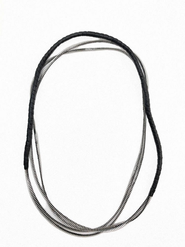 Браслет из кожи чёрный серебро арт 56301 |