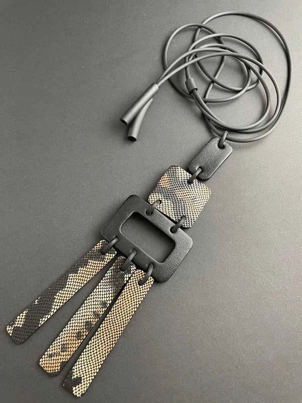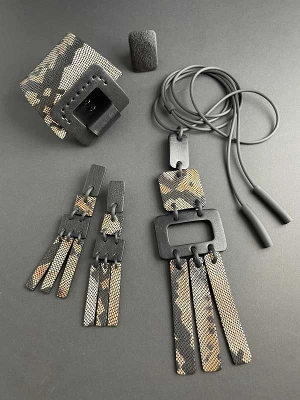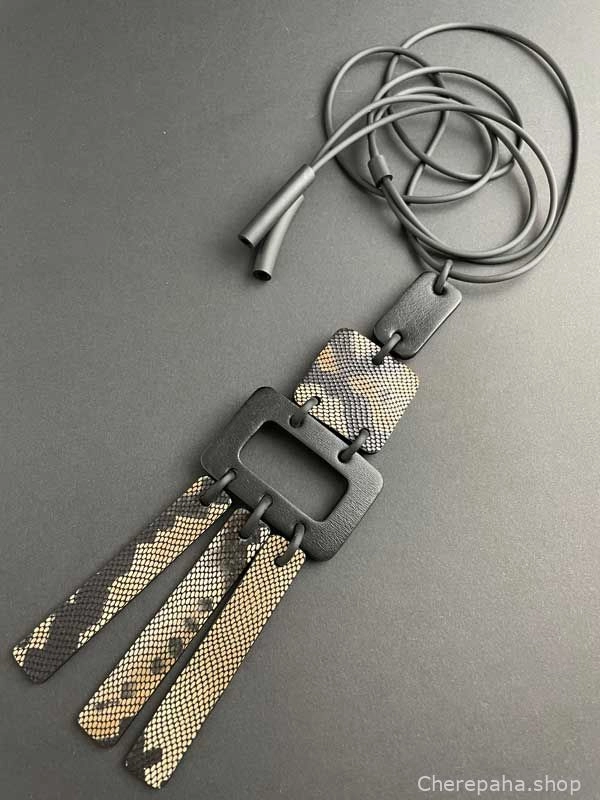 Серьги из кожи чёрный бежевая змея арт 31001 |