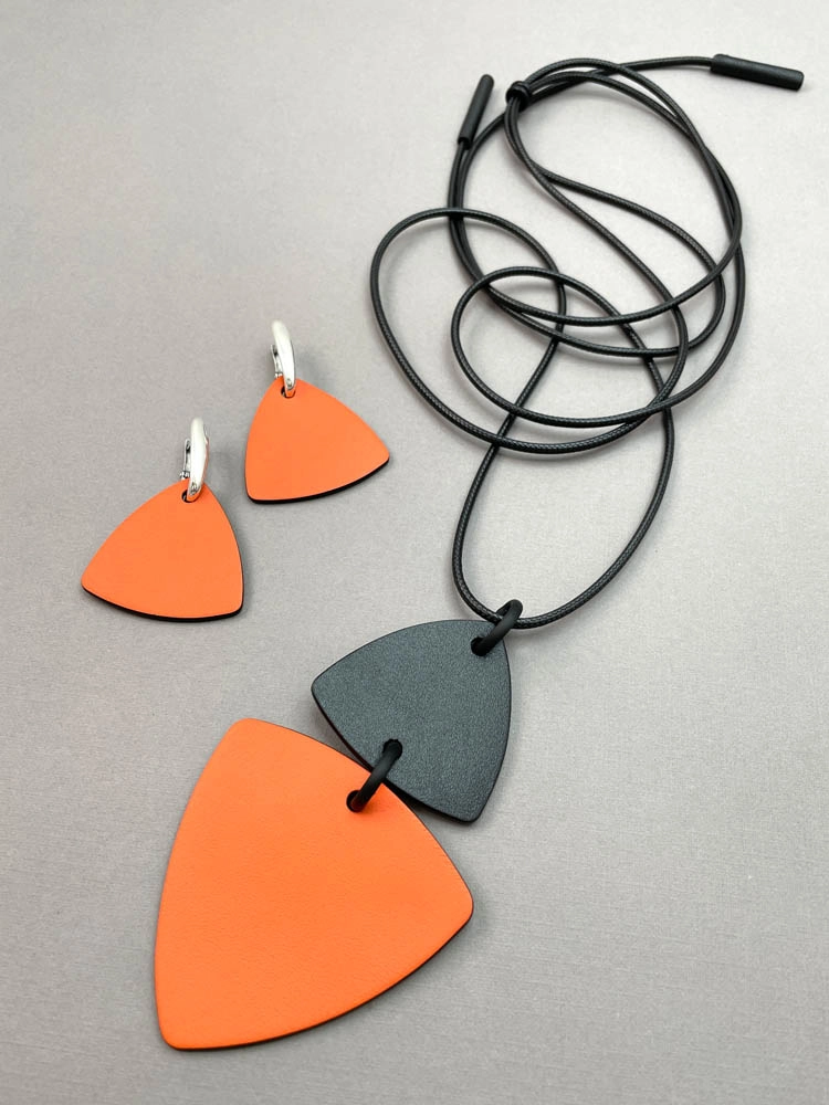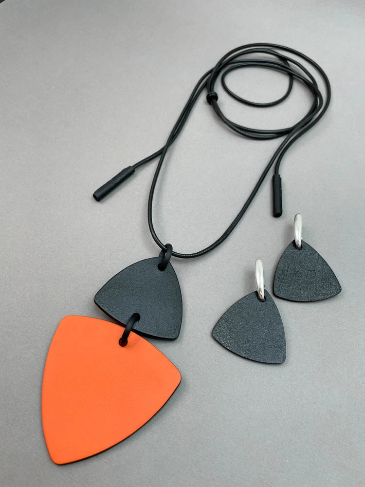 Серьги из кожи ТРЕУГОЛЬНИК M оранжевый чёрный арт 38003 |
