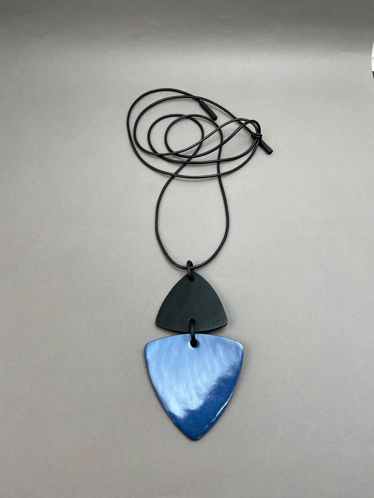 Кулон из кожи ФЛАКОН синий лак и чёрный