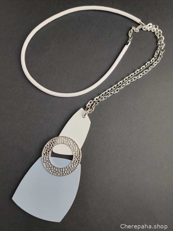 Серьги из кожи ТРАПЕЦИЯ голубой_белый арт 1712 |