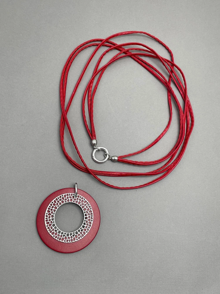 Кольцо кожаное КРУГ 4 красный гладкий_чёрный арт 1387 |