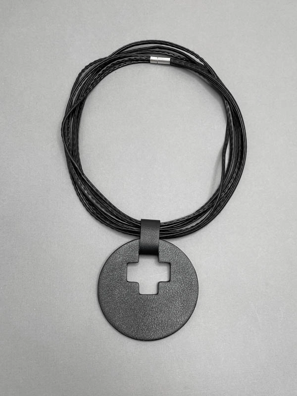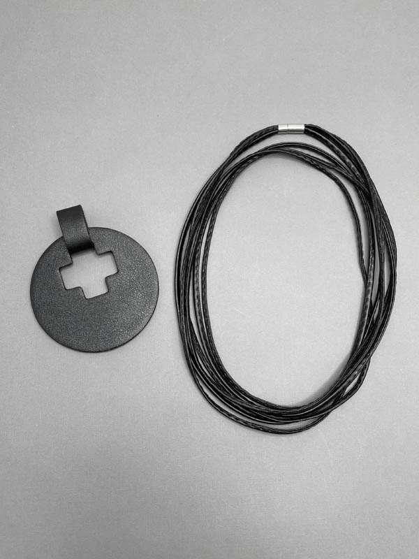 Кулон из кожи КРЕСТ чёрный арт 43801