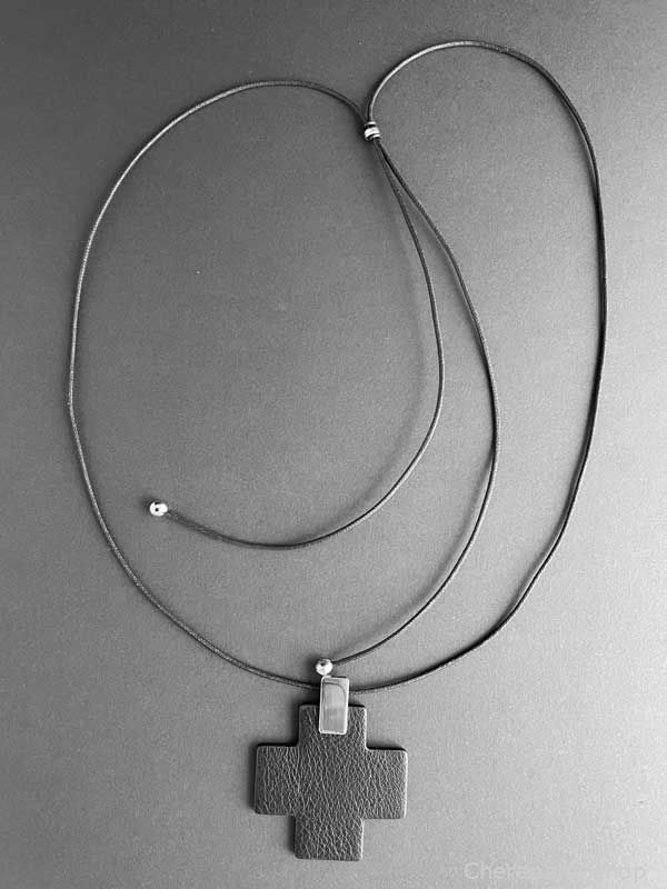 Брошь из кожи КРЕСТ с цепями чёрный арт 25601 |