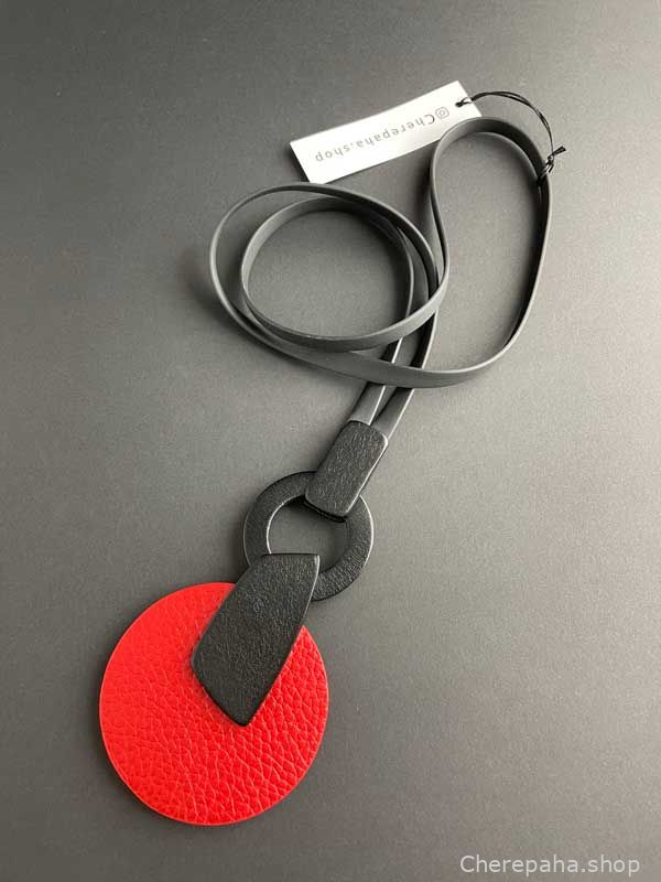 Кулон из кожи КРУГ со вставкой асимметрия