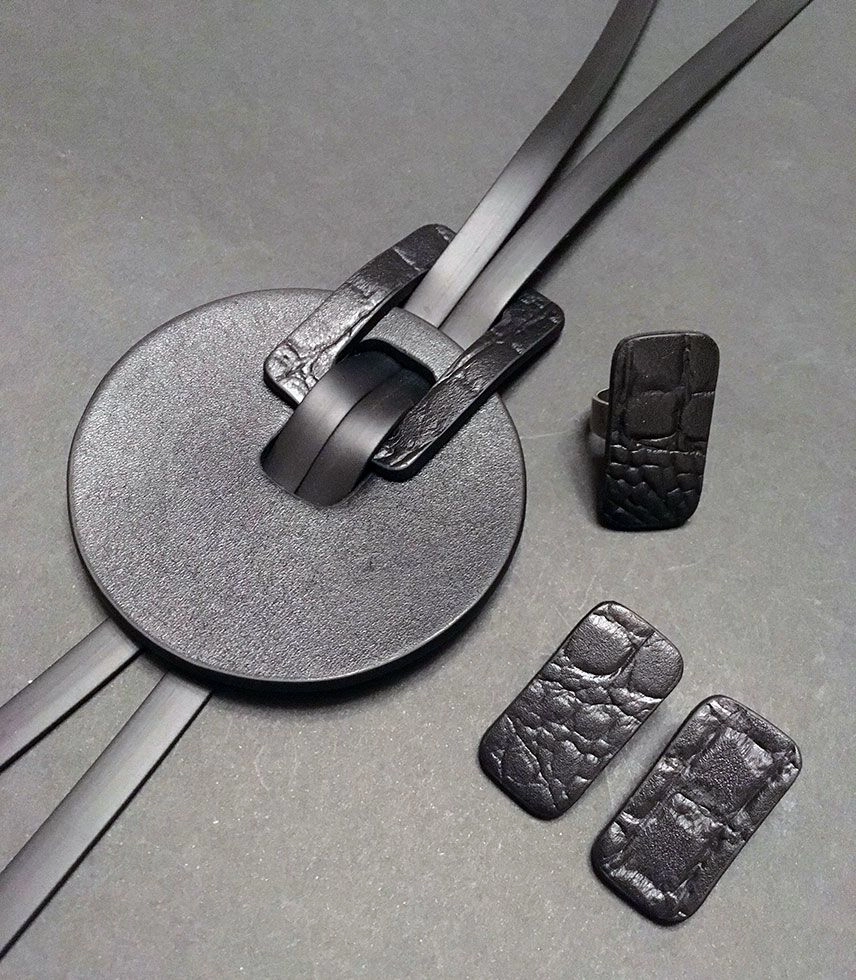 Колье из натуральной кожи с каучуком.