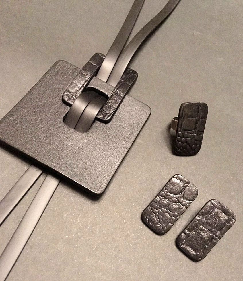 Колье из натуральной кожи с каучуком.