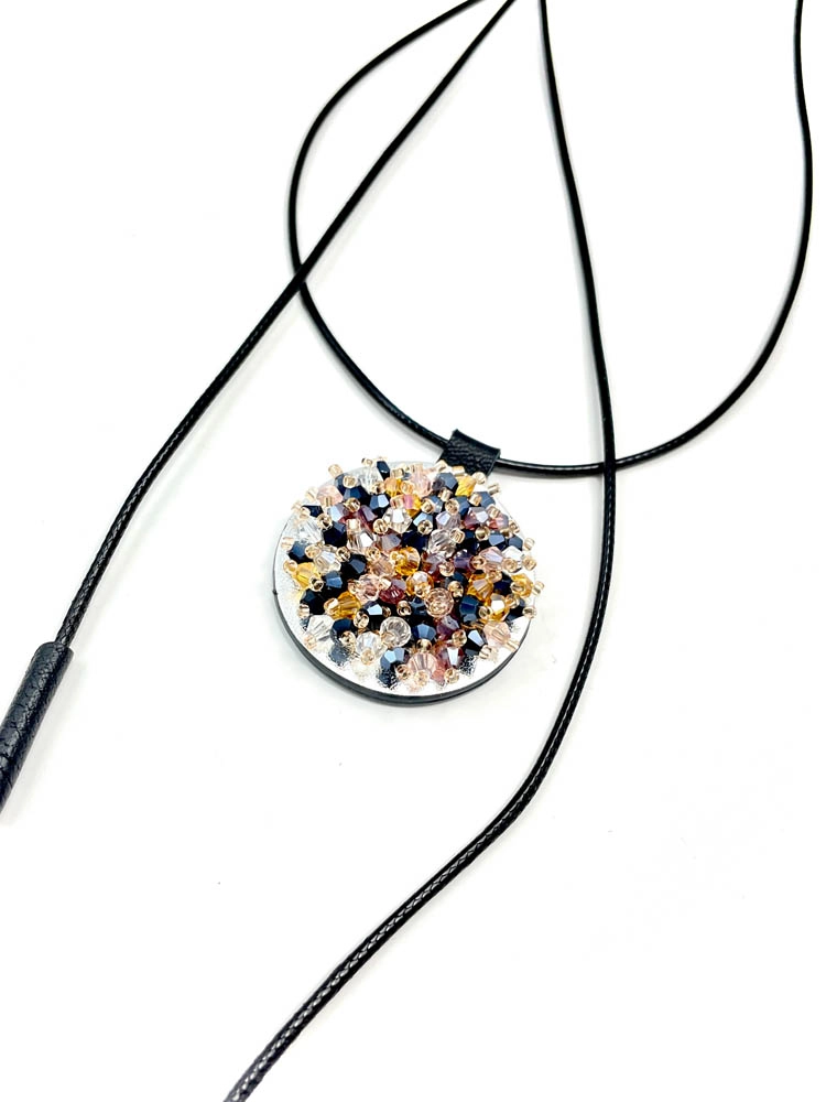 размер: длина шнура 180 см (регулируется), кулон D 4 см