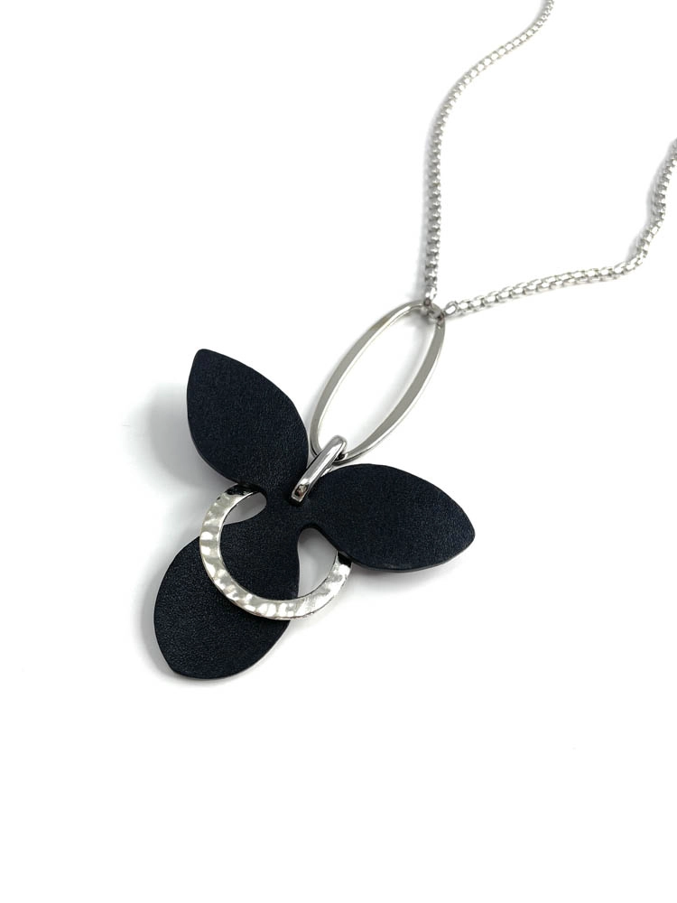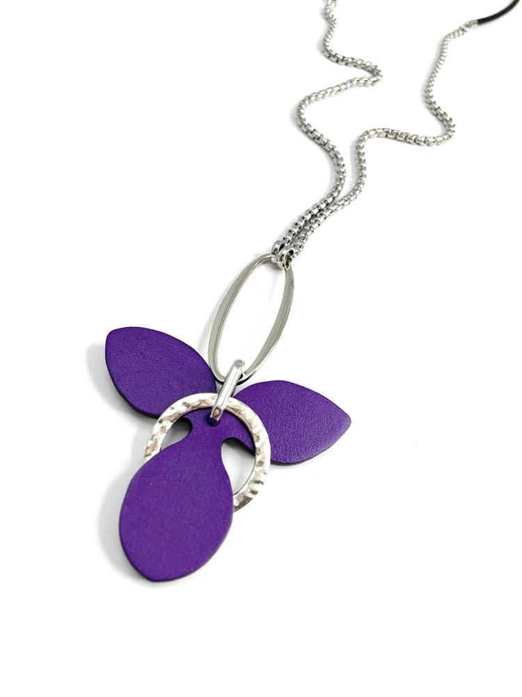 Кулон из кожи ОРХИДЕЯ фиолетовый чёрный