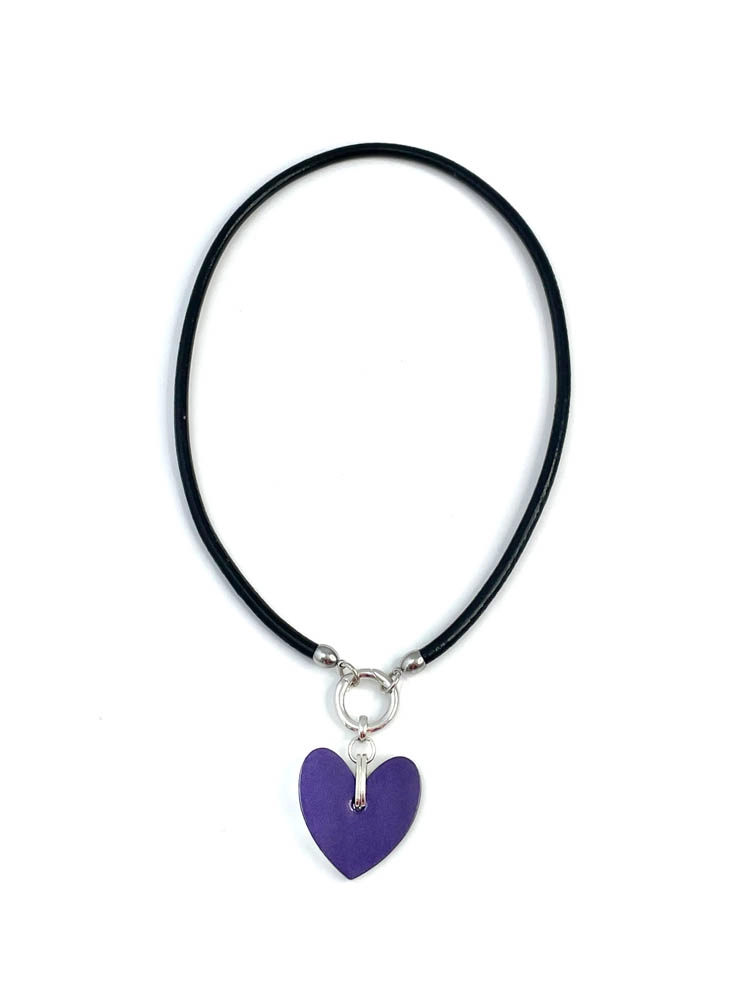 Кулон из кожи СЕРДЕЧКО фиалковый лак чёрный арт 43503