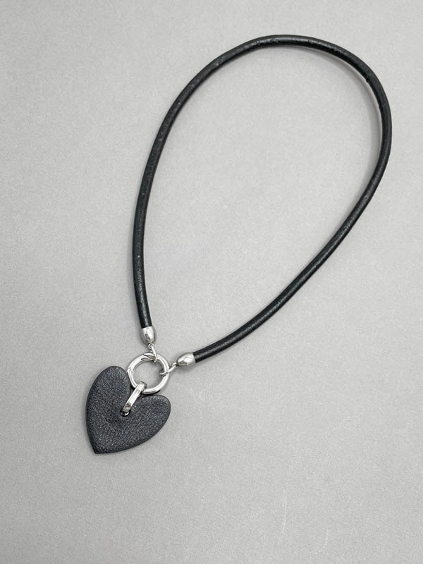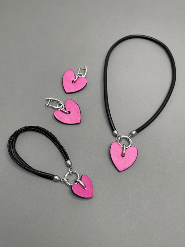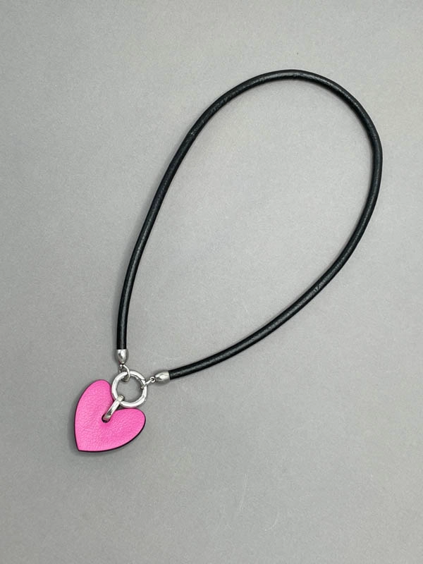 Кулон из кожи СЕРДЕЧКО фуксия чёрный арт 43501