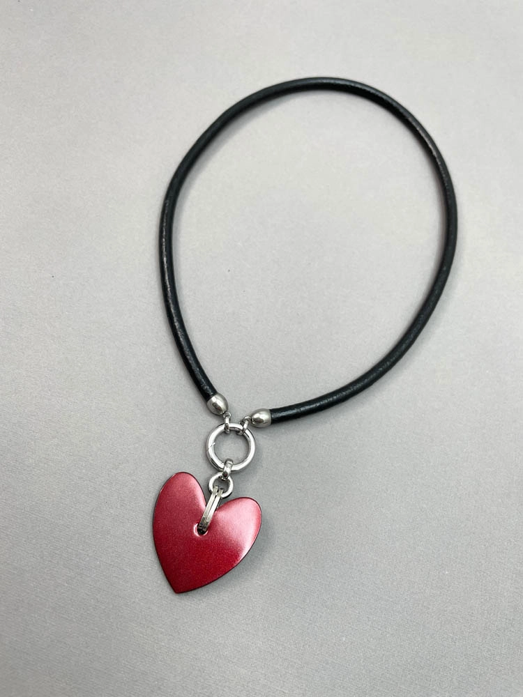 Кулон из кожи СЕРДЕЧКО красный лак чёрный арт 43502