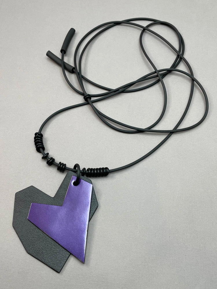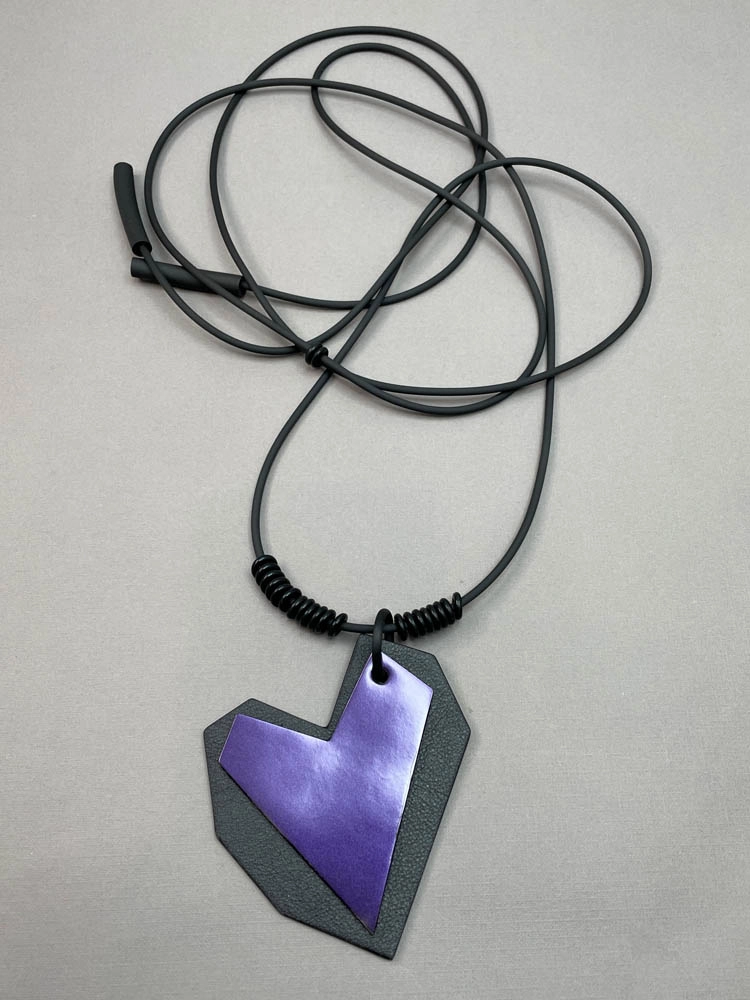 Кулон из кожи СЕРДЦЕ ПАРМЫ фиалковый / чёрный