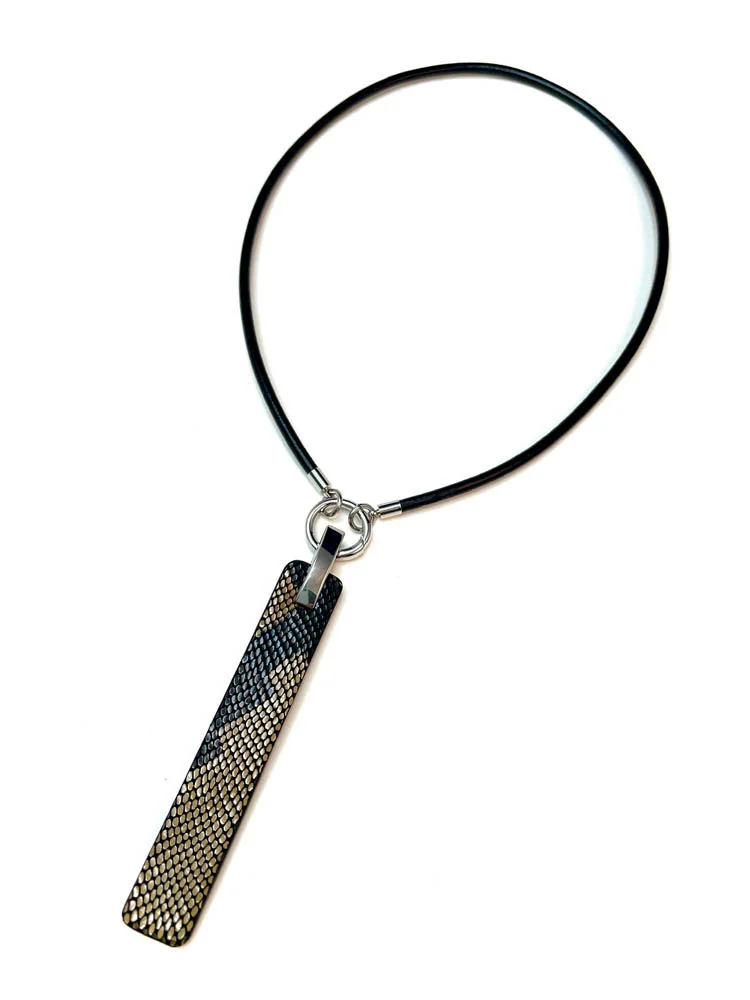 Кулон СТИК 2 из натуральной кожи цвет бежевая змея и чёрный