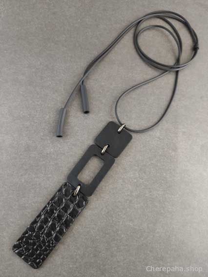 Кулон кожаный СТИК крокодил чёрный арт 1869