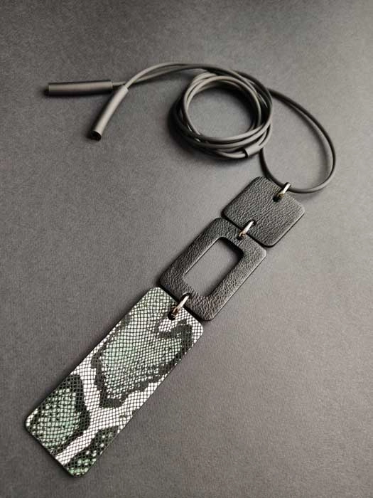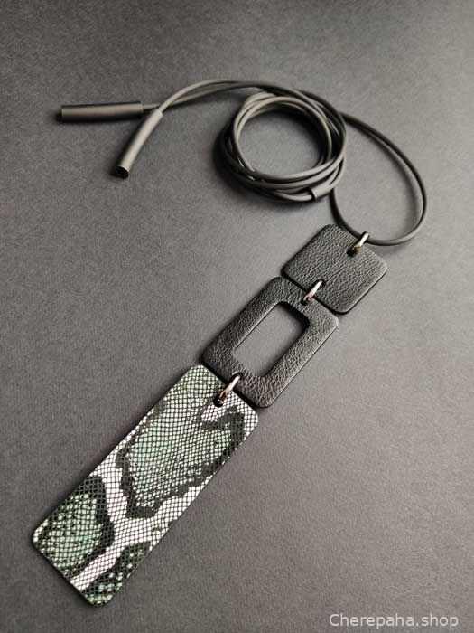Кулон из кожи СТИК змея изумрудная арт 1860