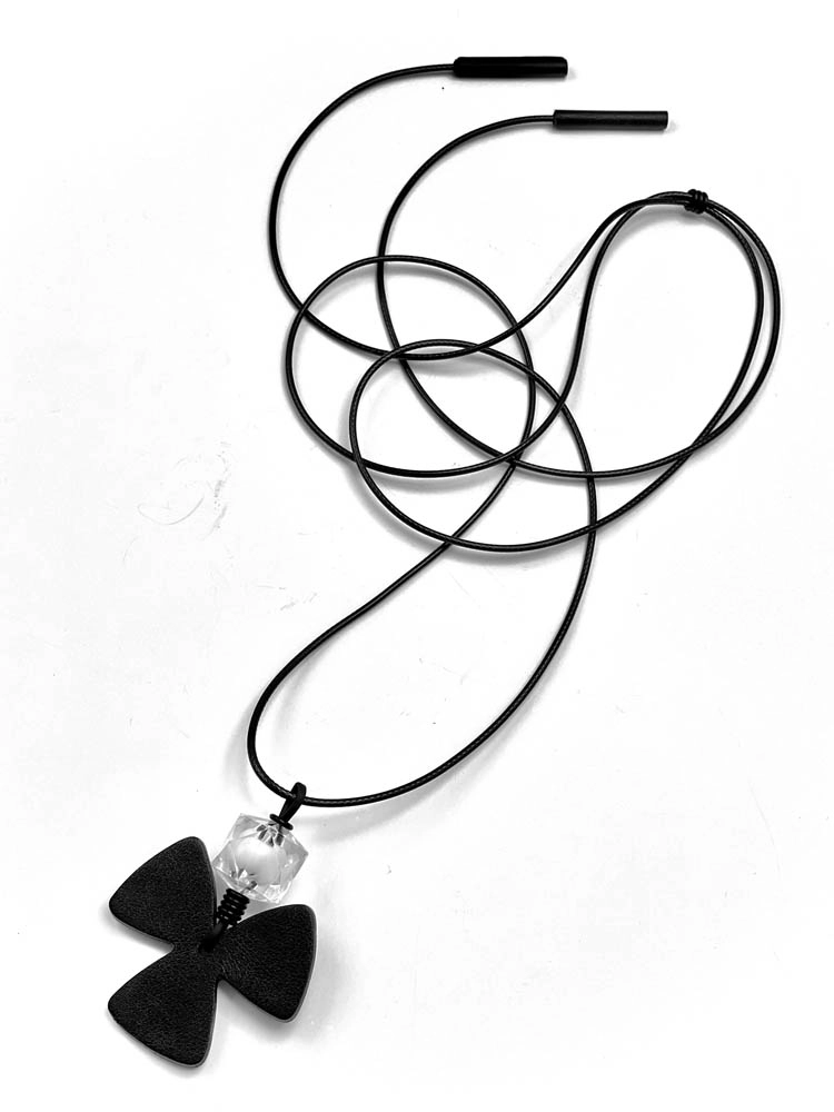 Кулон из кожи ТРИЛИСТНИК С БУСИНОЙ чёрный
