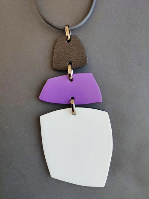 Кулон из кожи ТРИО 3 белый фиолетовый чёрный арт 29208