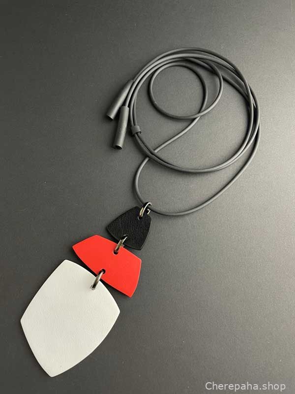 Кулон кожаный ТРИО 3 белый красный чёрный арт 29209