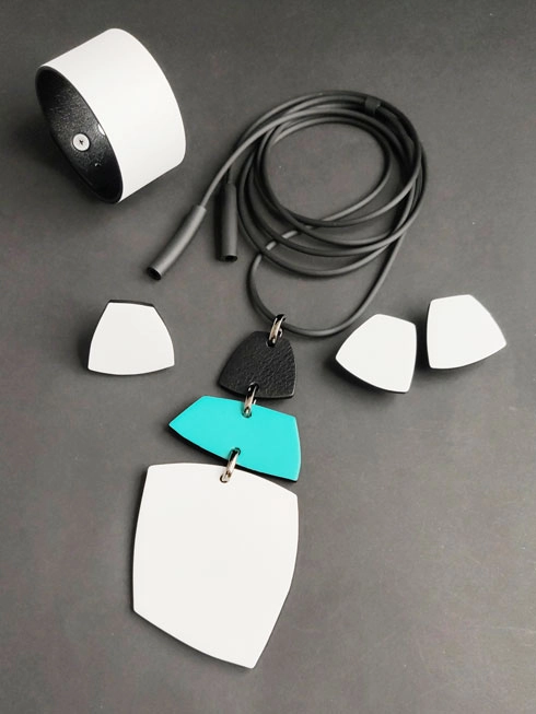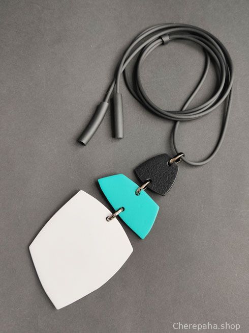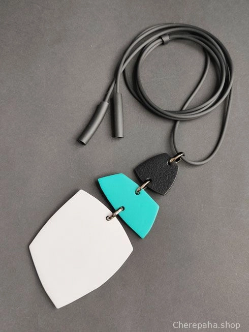 Кулон из кожи ТРИО 3 белый ментол чёрный арт 29204