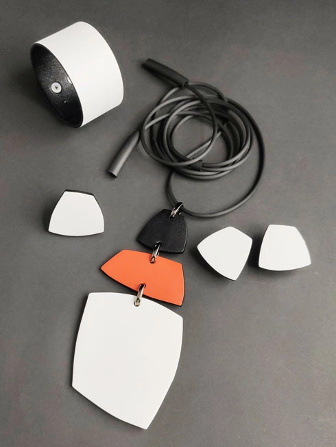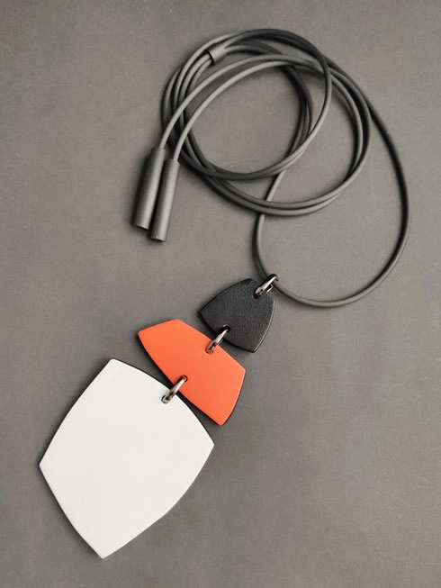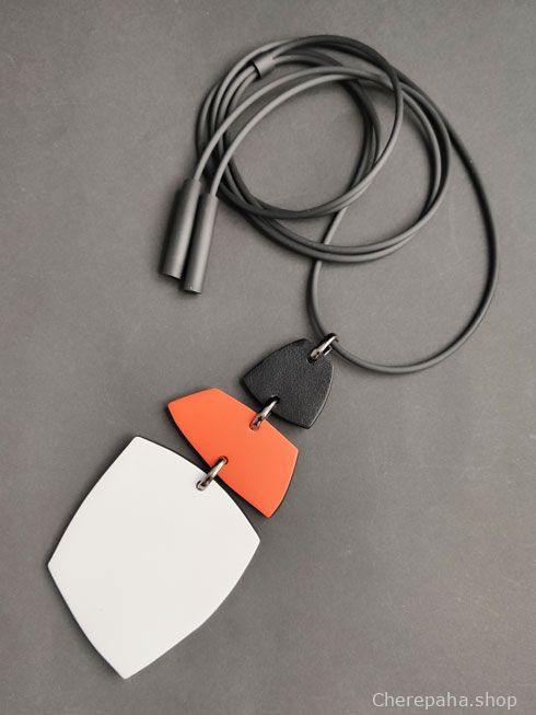 Кулон из кожи ТРИО 3 белый оранжевый чёрный арт 29206