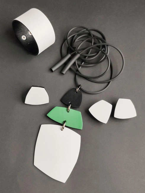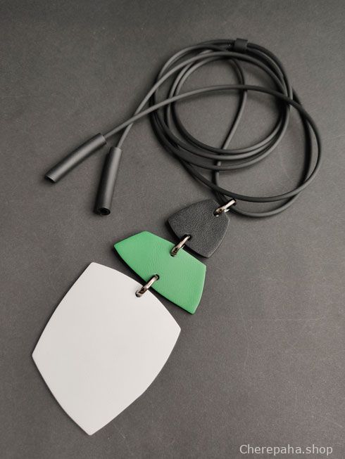Кулон из кожи ТРИО 3 белый зелёный чёрный арт 29203