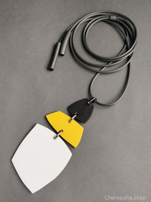 Кулон из кожи ТРИО 3 белый жёлтый чёрный арт 29201