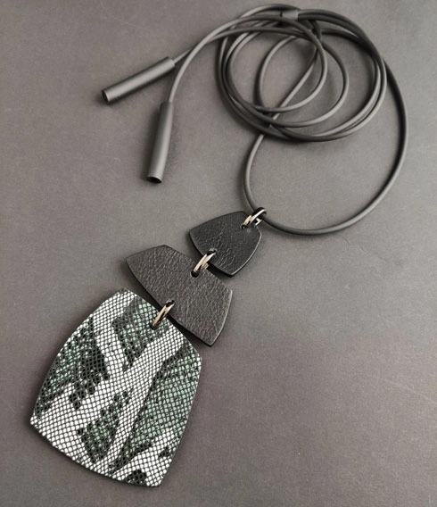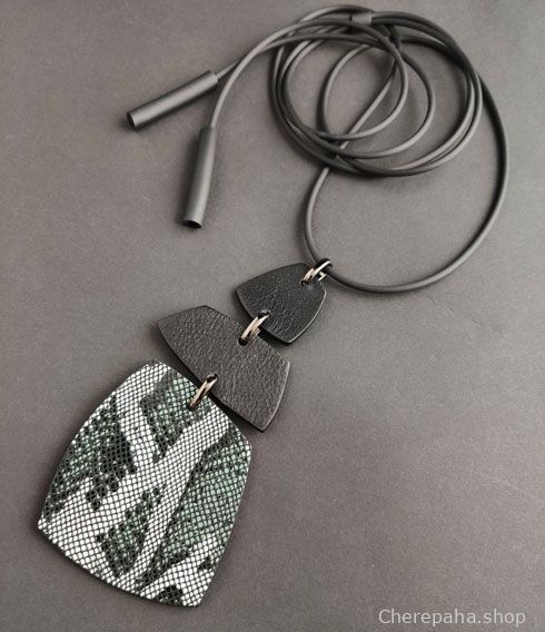 Кулон из кожи ТРИО змея изумрудная арт 23315