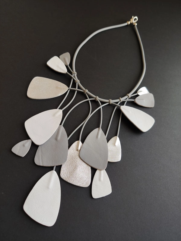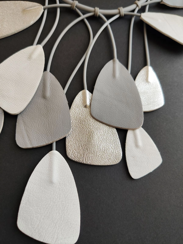 Ожерелье из кожи ЛИАНА белый серебро арт 25712