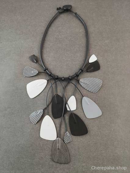 Ожерелье кожаное ЛИАНА белый_серебро_серый арт 25707
