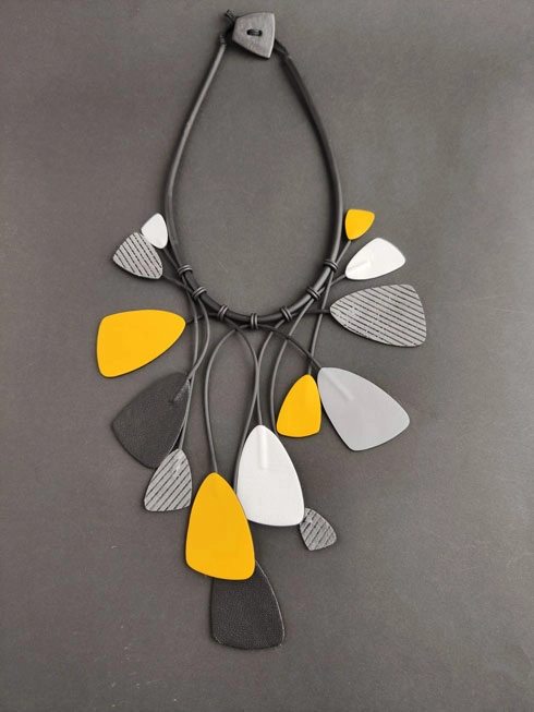 Ожерелье из кожи ЛИАНА жёлтый_серебро_серый арт 25708
